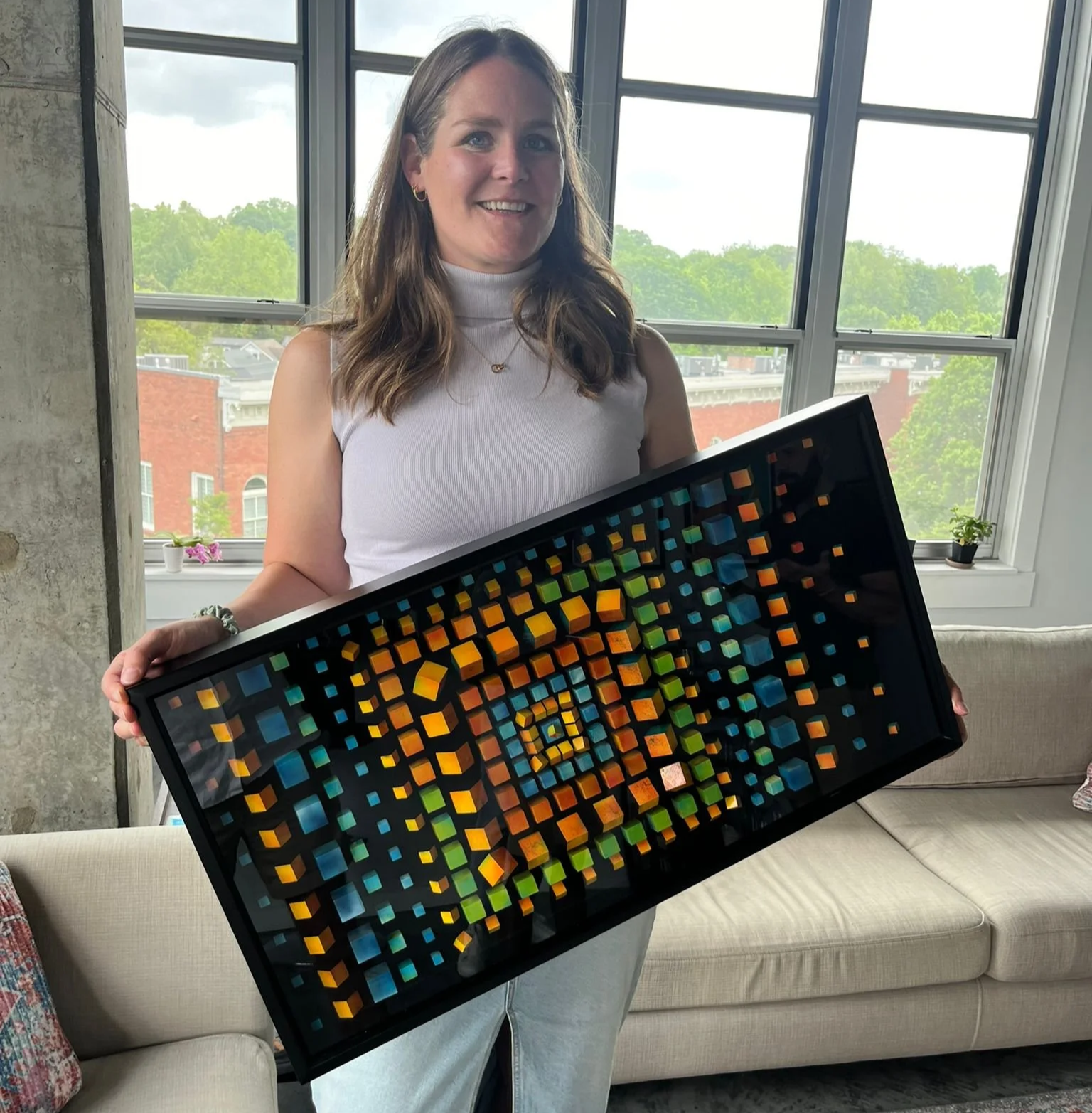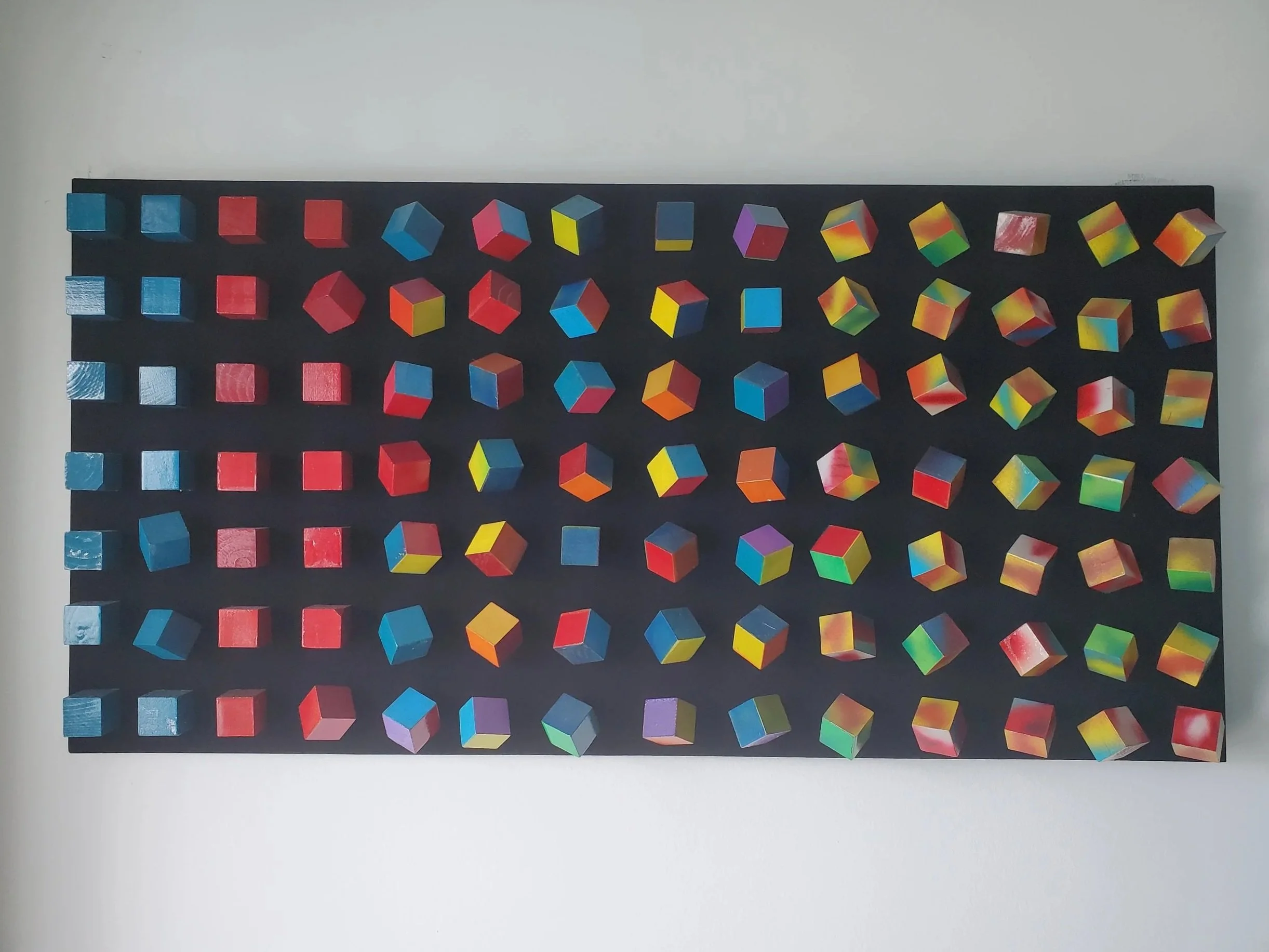 “Notre Via—“Our Journey”—is the story of humankind: our history, our evolution, our dreams, and our shared experiences expressed through art. Each 3D painting is handcrafted from wood, acrylic, and ultra-dark substrates, merging vibrant color, layered depth, and geometric precision. Works like Unanimous Unbalance is a meditation on contradiction—how imbalance is often the most universal constant in our journey. Crafted in wood and acrylic with layered 3D precision, the piece reflects the tension between harmony and disruption. It reminds us that imperfection is not the opposite of order, but part of the greater rhythm of humanity’s evolution.”